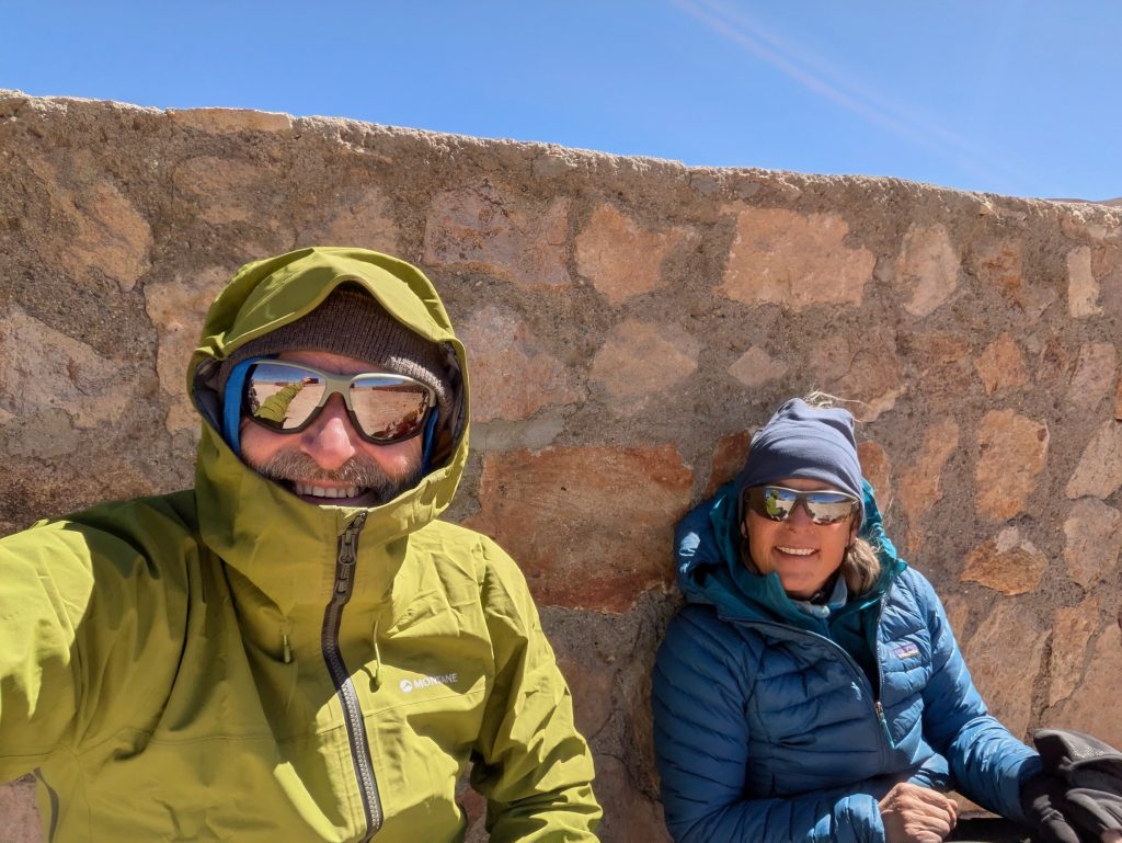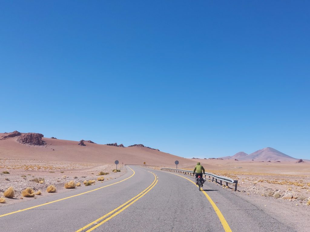 Von San Pedro de Atacama (Chile) wollten wir über den Paso Jama nach Argentinien fahren. Der Aufstieg von San Pedro zum Grenzübergang Hito Cajon (Chile / Bolivien) beträgt mehr als 2000 Höhenmeter. Die Strasse ist stark befahren und wir hatten daher keine Lust, diesen Teil mit dem Fahrrad zurückzulegen. Wir organisierten für diese Teilstrecke einen Pick-Up. Als wir oben ausstiegen, wehte uns ein eisiger Wind entgegen. Auf dem ersten Teil Richtung Jama hatten wir Rückenwind und kamen flott voran. Nach einer grossen Kurve kam der Wind mit voller Wucht von der Seite und fegte uns fast von den Velos. So wollten wir nicht weiter fahren und machten kurzerhand Autostopp. Wir hatten Glück und eine Touristenfamilie nahm uns mit Ihrem Pick-Up zwanzig Kilometer mit. Von dort hatten wir wieder Rückenwind.