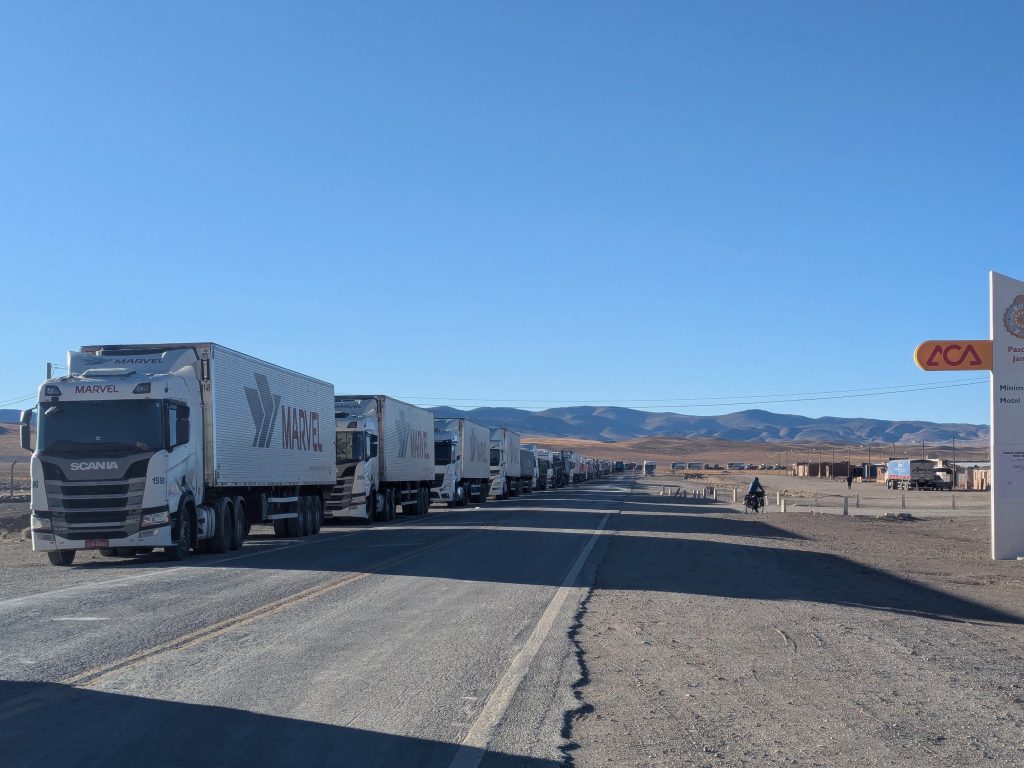Am Morgen standen auf der argentinischen Seite schon unzählige Lastwagen und warteten, bis die Grenze öffnete. Der Passo Jama wurde aus Sicherheitsgründen über Nacht gesperrt.