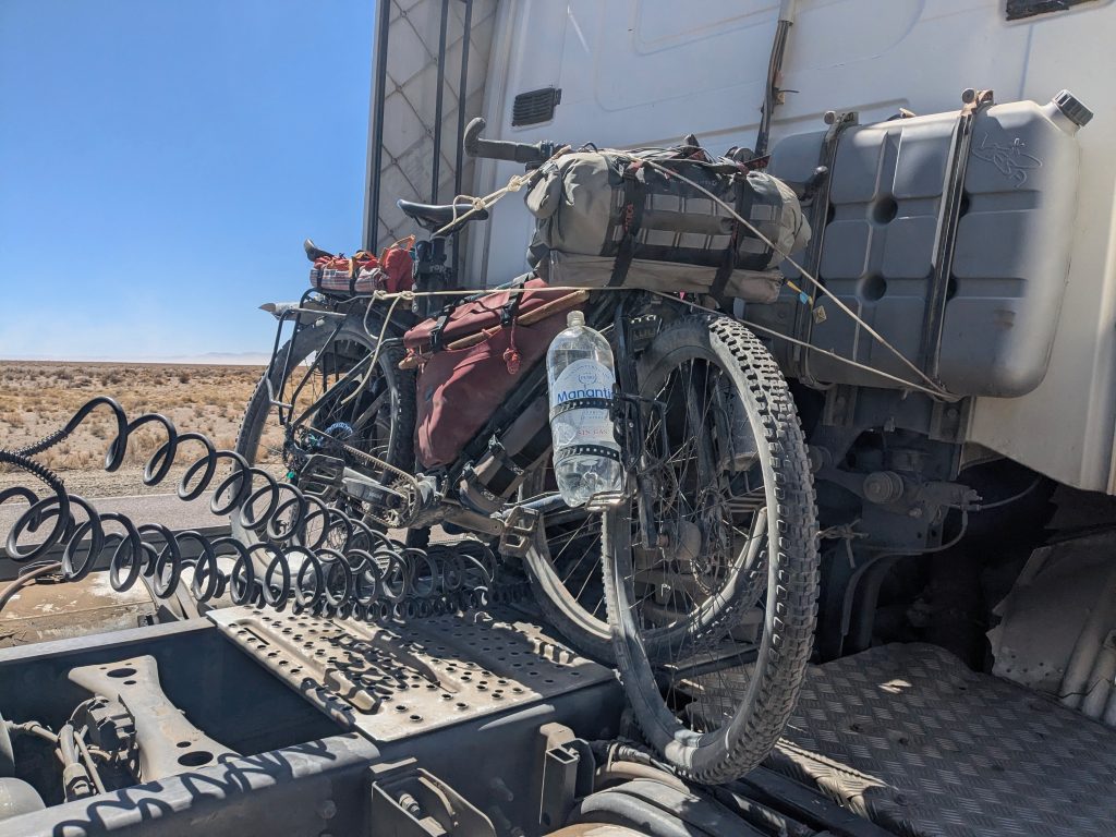 Umkehren war für uns keine Option und weiterfahren auch nicht. So machten wir ein weiteres mal Autostopp. Nach einiger Zeit hielt tatsächlich ein Lastwagen an und wir durften unsere Fahrräder aufladen. Sebastian war unsere Rettung an diesem stürmischen Tag. ❤️lichen Dank fürs Mitnehmen 🚛 und die interessanten Gespräche.🤗
