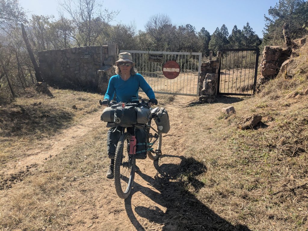 Ein paar Kilometer vor unserem Etappenziel standen wir plötzlich vor einem verschlossenem Tor. Umkehren kam nicht in Frage. Also hiess es Gepäck abladen und alles über das Tor verfrachten. Mit vereinten Kräften hatten wir das relativ schnell geschafft. Alles aufladen und weiter ging die Fahrt. Die letzten Kilometer ging es bergab und wir freuten uns auf unseren Campingplatz. Kurz vor dem Ziel wurde die Abfahrt durch einen Plattfuss von Ruths Velo gestoppt. Aber auch das Problem war irgendwann behoben.