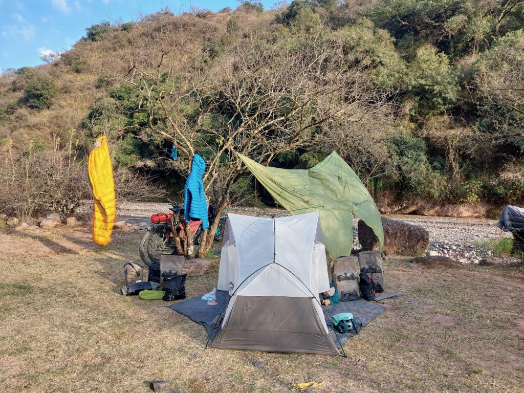 An einem Fluss schlugen wir unser Zelt auf. Bei milden Temperaturen genossen wir die Abendstimmung und bestaunten den Sternenhimmel. Für uns ein ungewohnter Luxus, da wir davor wegen der Kälte abends gerne ins Zelt und in die warmen Schlafsäcke krochen.