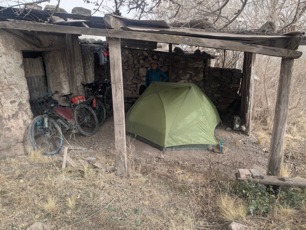 Je höher wir kamen, desto stärker wurde der Wind. Wir fanden bei einem verlassenen Gebäude einen windgeschützten Zeltplatz.