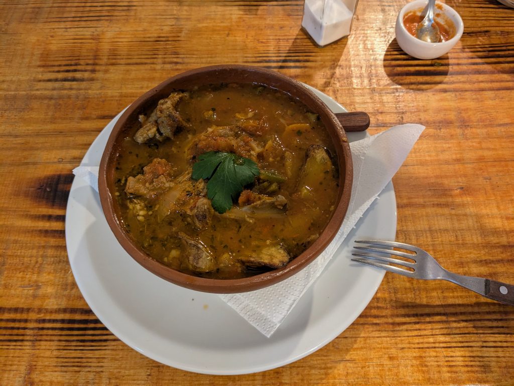 Wir schlemmten uns durch die lokale Speisekarte. Nik geniesst hier eine Cazuela de Cabrito.